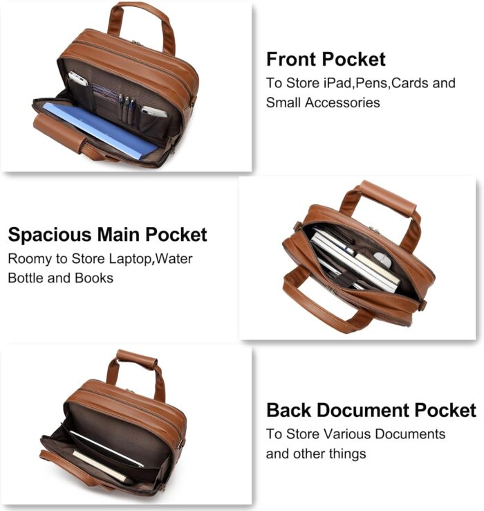 - 【TROLLEY COMPATIBLE】The compatible belt at the back of mens leather laptop briefcase can be easily fit into luggage trolley, freeing your hands and bringing you comfort and convenience for business trips and travel.