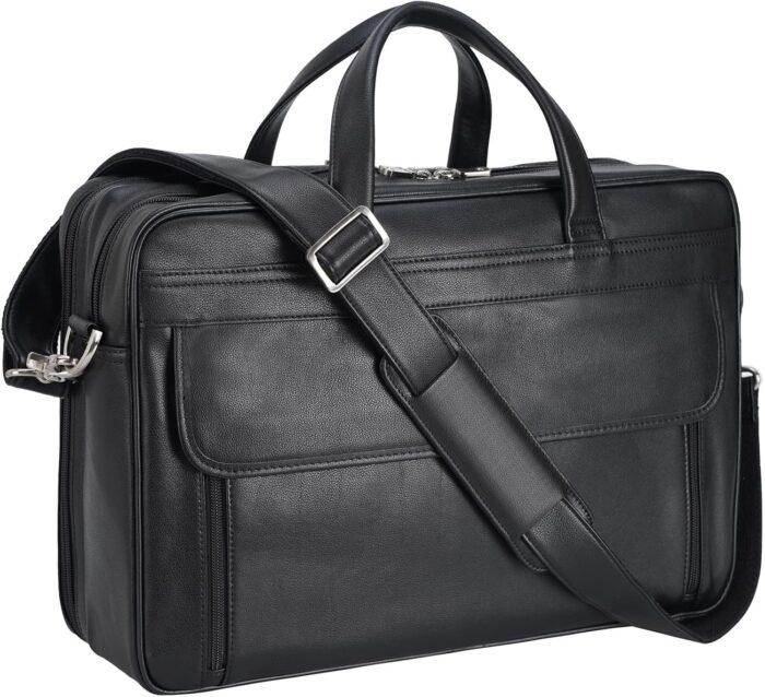 • 【Fits Multi Occasions】This classic black leather bag can stands on its own. It can be used as men’s formal business briefcase, daily shoulder bag, crossbody messenger bag, handbag, computer laptop bag, business office work bag, leather flapover case, adult teachers bags, or travel pilot bag. It is an ideal gift for husband, teacher, father, or any mens on Christmas, Valentine’s day, father’s day, anniversary,or birthday