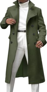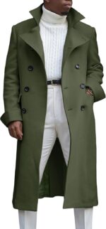 Men’s Notch Lapel Double Breasted Long Trench Coat Casual Cotton Blend Peacoat