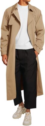 Men’s Trench Coat Double Breasted Belted Windbreaker Jackets Lapel Lightweight Long Jacket Casual Overcoat